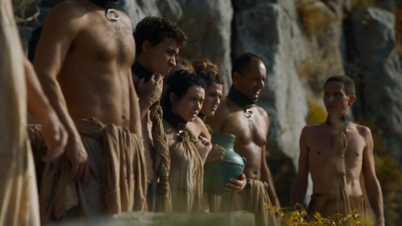 What a coincidence! Is this an example of a cross-breeding colony? Notice the theme of interbreeding between human men and giant women relates to Maester Theron’s theory on the labyrinthine fortress on Battle Isle which postulates the involvement of a queer, misshapen race of half men sired by creatures of the salt seas upon human women. Seriously, given what we know about giants – their size and body odor in particular – which human man would consider taking a female giant to wife? All we have to do is consider Brienne’s arc for the answer to that question. What’s more, these presumable giant hybrids on Lorath were eradicated by aggressors from the sea, again reminding us of Maester Theron’s theory.